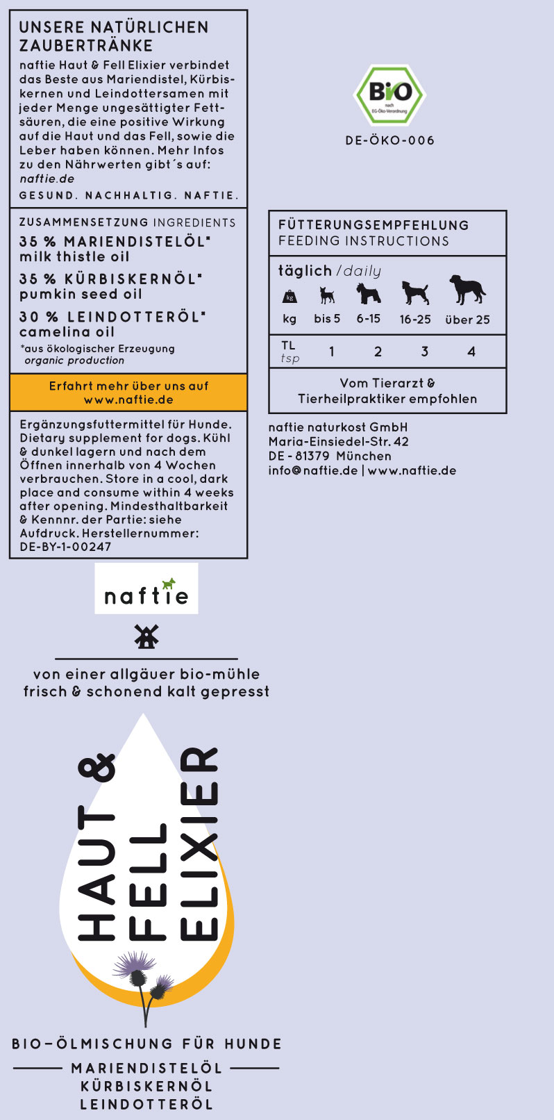 Bio Ergänzungsfutter Öl Haut&Fell Elexier 100ml naftie - Bild 2
