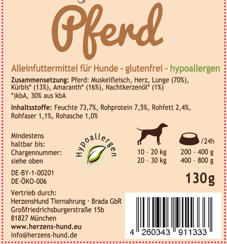 Pferd, Bio-Kürbis Ergänzungsfutter Hund 130g HerzensHund