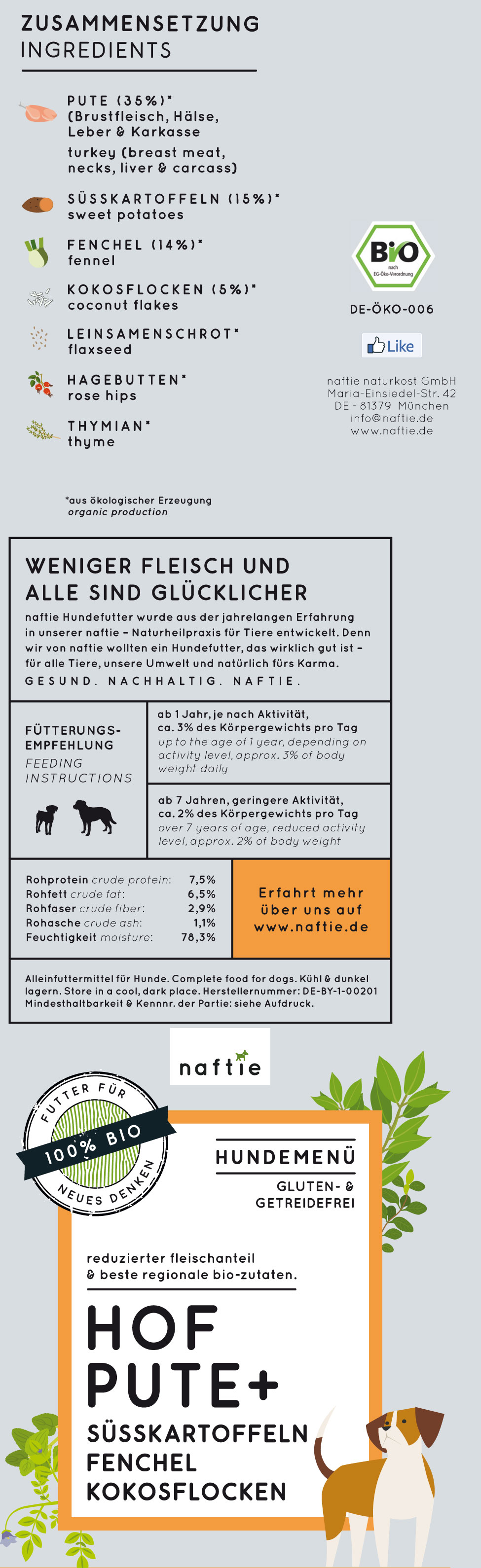 Bio Hundemenü Hof Pute+ 400g naftie - Bild 1