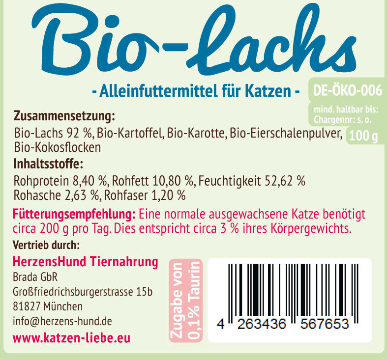 Bio Ergänzungsfutter Katze Lachs, Kartoffel, Kokosflocken Pouch Beutel 100g Katz - Bild 1Bio Ergänzungsfutter Katze Lachs, Kartoffel, Kokosflocken Pouch Beutel 100g Katz - Bild 2