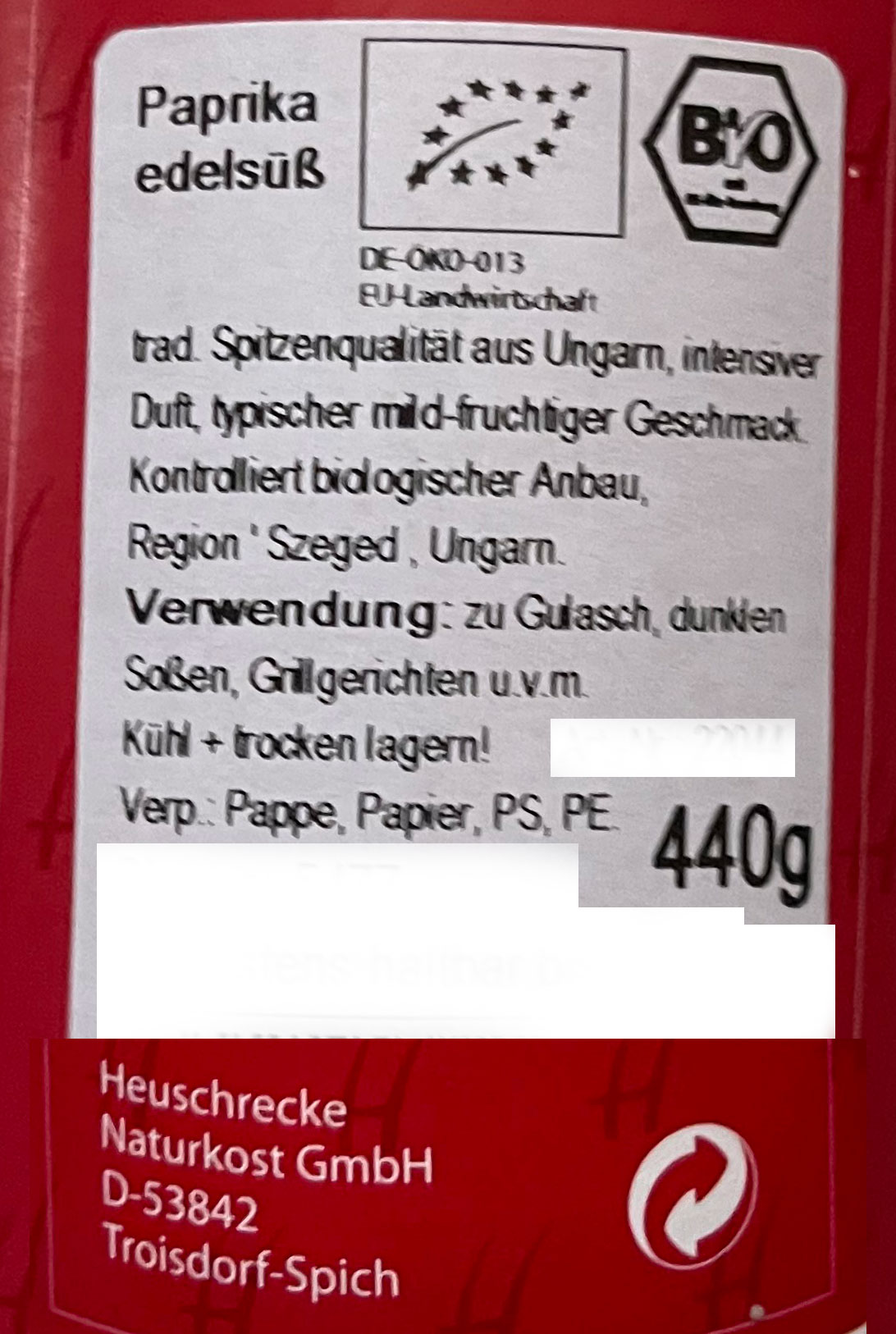 Bio Paprika edelsüß, 440g Gastro-Steudose Heuschrecke